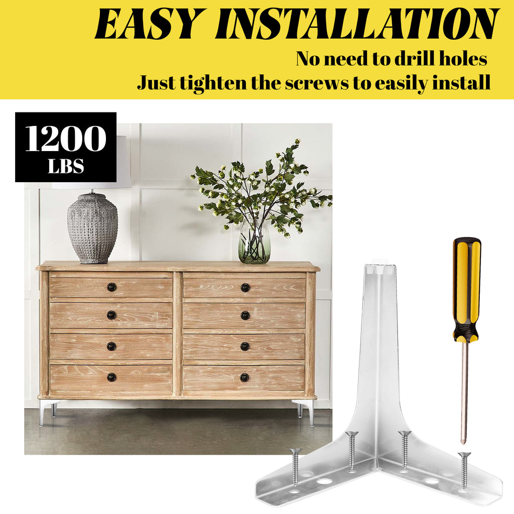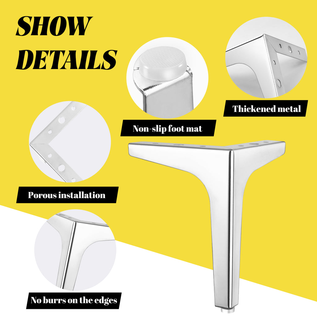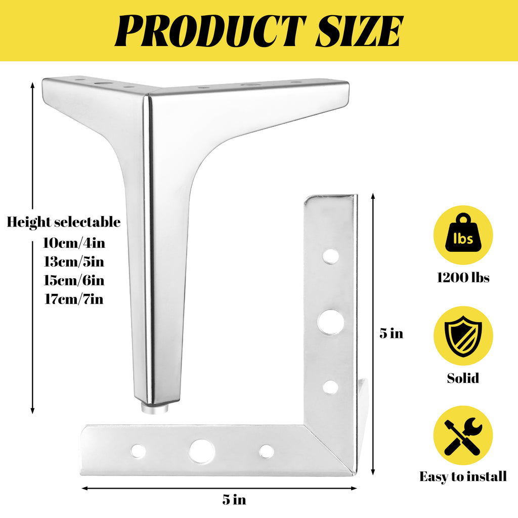 - 【High-Quality Materials & Quick Installation】Crafted from heavy-duty metal, these furniture legs are designed to withstand a load capacity of approximately 300lbs per leg. With a total capacity of up to 1200lbs (4pcs), they offer reliable support and stability for your furniture. Our metal legs for table come with pre-drilled holes and screws. Only one person uses an electric drill to fix the sofa legs, tighten the screws, and the installation can be completed in 15 minutes. So people of all skill levels can install it quickly and easily!